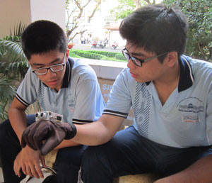 Đó là sản phẩm “Găng tay hỗ trợ di chuyển dùng cảm biến sóng âm cho người khiếm thị” do Lâm Vũ Hoàng và Trần Quốc Cơ (học sinh lớp 11 chuyên Toán Trường THPT chuyên Lê Hồng Phong, TPHCM) nghiên cứu thực hiện. Sản phẩm thể hiện tính ứng dụng cao trong thực tiễn nên đã xuất sắc đạt giải nhất cuộc thi Khoa học kỹ thuật cấp quốc gia 2015 khu vực miền Nam. Tháng 5 tới, sản phẩm này tiếp tục được “đọ sức” tại sân chơi quốc tế ở Mỹ.